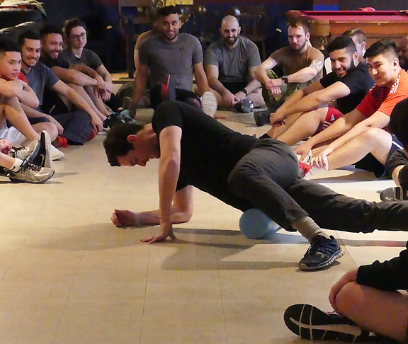 From my experience, most infantry soldiers have concrete ankles, really immobile thoracic spines and dangerously stiff hip complexes. This can all lead to a train wreck of issues down the line, in my case it was herniation of my back. This is why during the seminar we worked on "prehab" and specific measures to improve mobility. The techniques are very basic but can make a massive difference for injury prevention when done consistently.